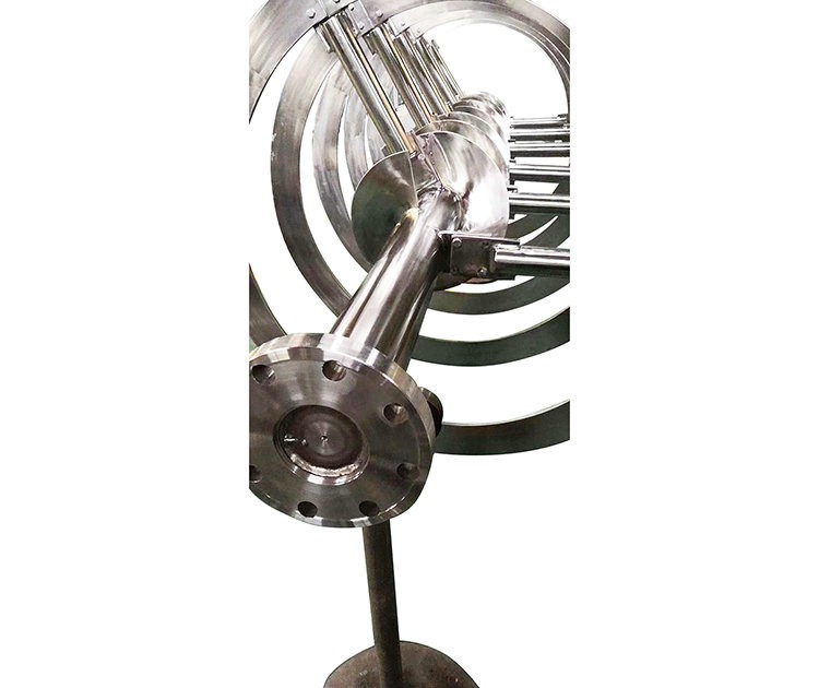螺帶式青青草视频下载器的葉片為螺帶狀,螺帶的數量為兩到三根,被安裝在青青草视频下载器的螺杆上,螺帶式青青草视频下载器的螺距決定了螺帶的外徑。螺帶式青青草视频下载器通常是在層流狀態下操作,適用於粘稠度高的液體和擬塑性的流體混合。